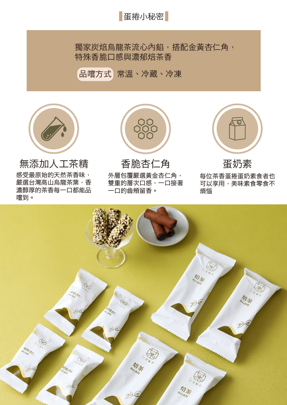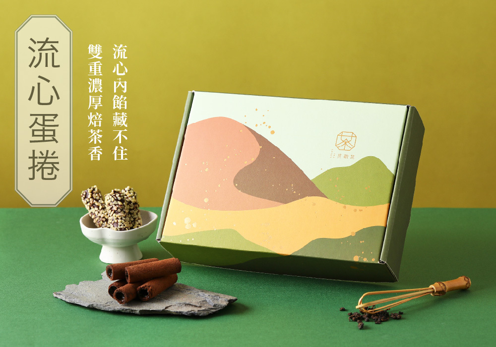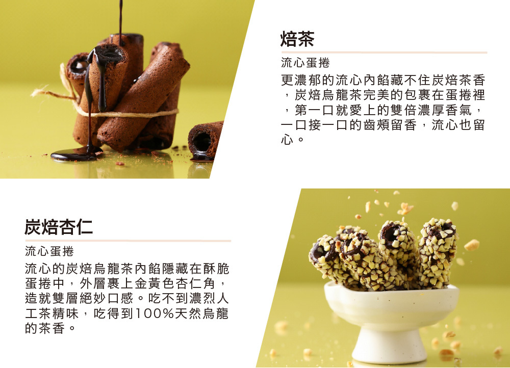 滿溢的流心內餡藏不住回甘茶香, 卻藏在炭焙烏龍茶製成的酥脆蛋捲內。